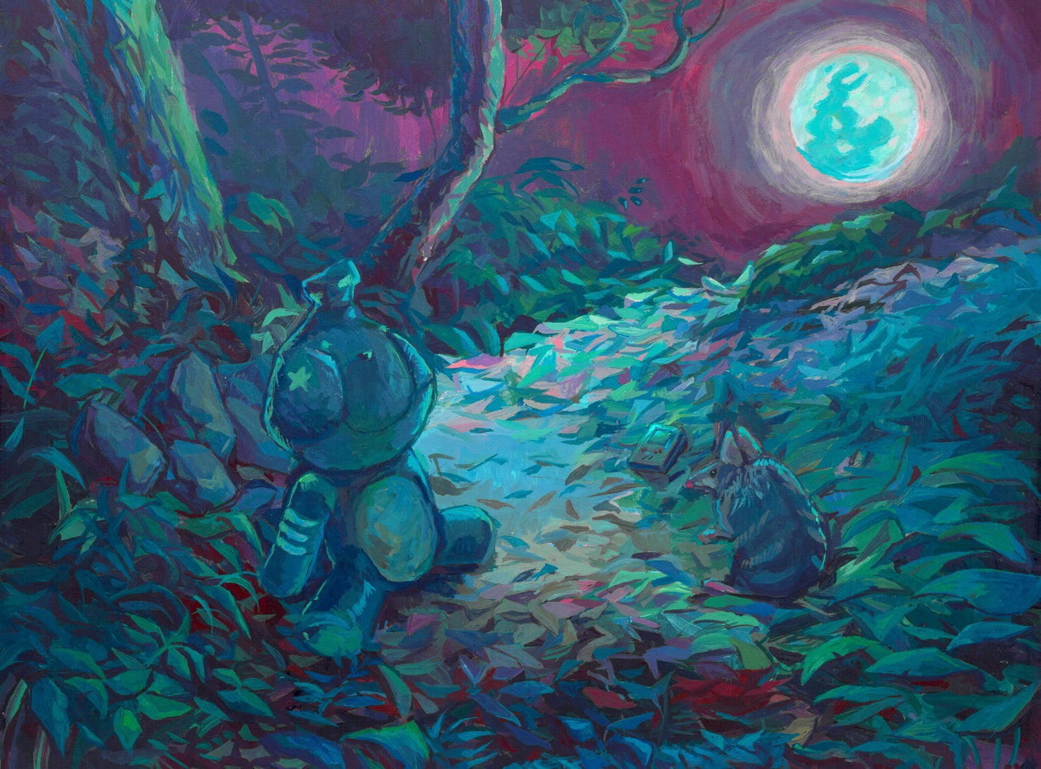 Full Moon Bear comes with a giclée print of Luke Rion's magical illustration. Luke is a Melbourne based artist capturing the nostalgic dreamscape of a childhood immersed in the worlds of game consoles.